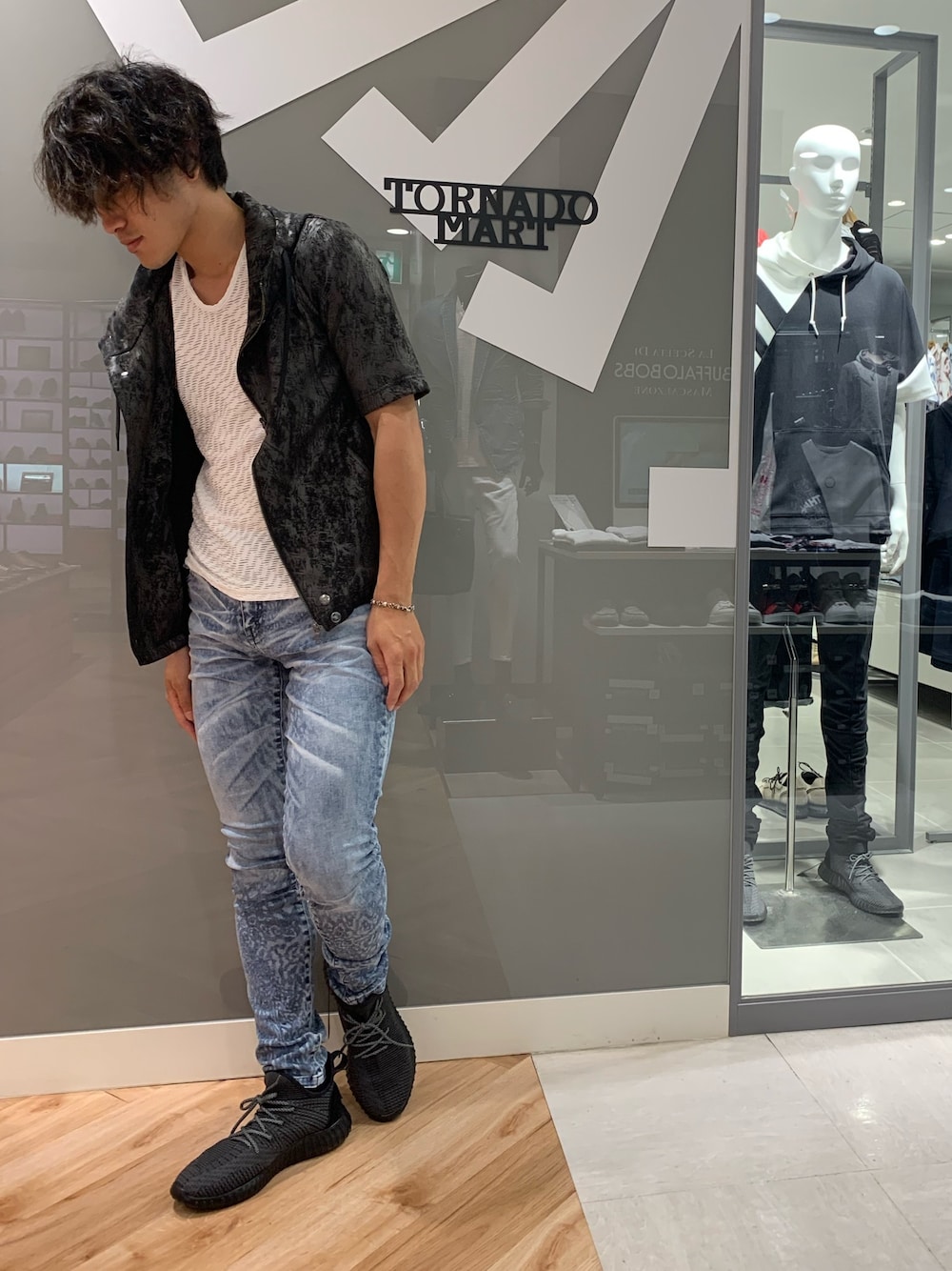 こんにちは!トルネードマート新宿マルイメン店の粕谷です! 本日ご紹介するアイテムは柄物のスキニーパンツです! こちらのスキニーパンツはレオパード柄でありながらもそんなにレオパード柄感がないためちょっと柄物はって方にも是非お試ししていただきたいパンツです! 今回のスタイリングはロック感もありつつスポーティな感じもあるスタイリングを組ませて頂きました! 皆様も是非1度お試ししてみてください! パーカー 6311178014 ¥17,800+税 インナー 6311178003 ¥11,800+税 パンツ 631111702 ¥28,000+税 シューズ 6311166005 ¥17,800+税