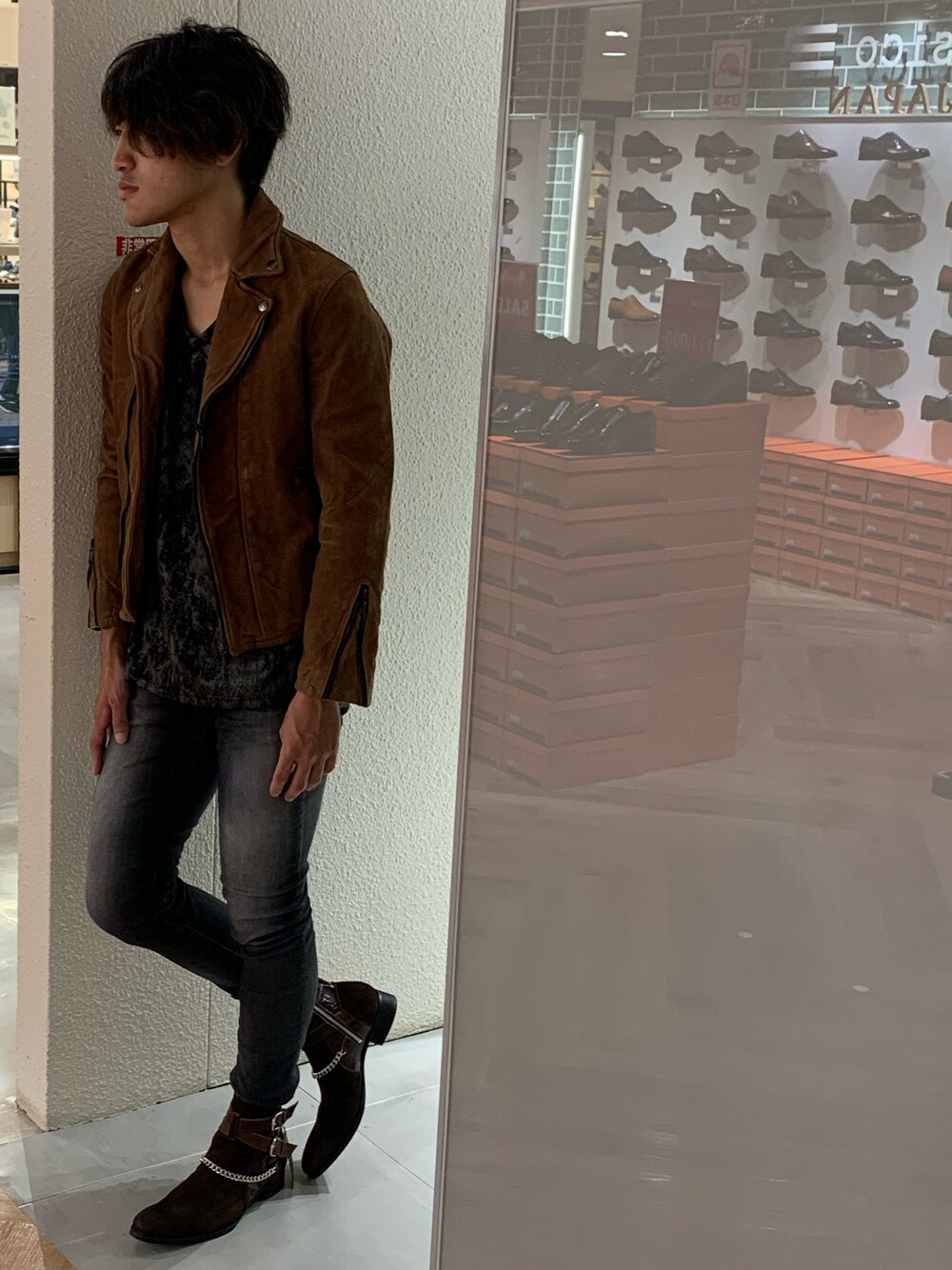 こんにちは!トルネードマート新宿マルイメン店の粕谷です! 本日ご紹介するアイテムはダブルライダースです!! 例年のライダースと加工感が違い光沢感のあるツヤ感と言うよりもマットで柔らかな質感になっております! ライダースを何着かお持ちの方でもこの質感のライダースはお持ちでないかもしれないアイテムです!! ライダースと言うと漢らしさの際立つカッコイイアウターやバイクに乗る人がよく着るアイテムと思う方が多く憧れのアイテムであると思います! 今回はあえて今らしさもあるスタイリングを組ませていただきました! ショート丈ライダースで魅せるインナーというテーマで普段よりワンサイズ上のインナーを着てより一層丈感の違いを出してレイヤードを強調してみました 皆様も是非1度お試ししてみてください! ライダース 6311214002 ¥59,800+税 インナー 6311218015 ¥8,800+税 パンツ 6311217006 ¥25,800+税 シューズ 6311266002 ¥42,000+税