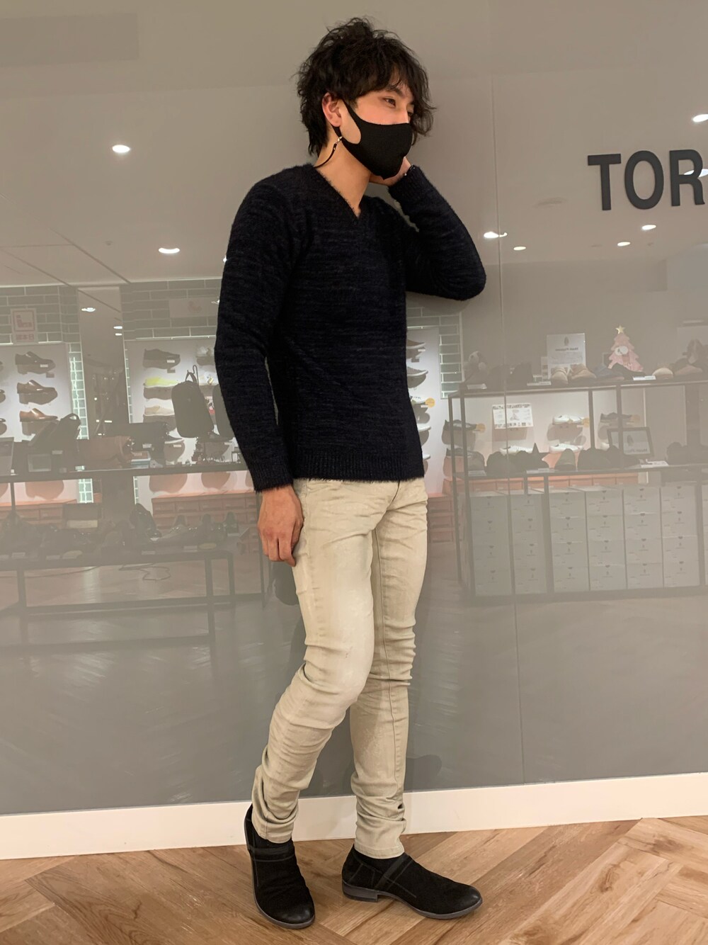 こんにちは!トルネードマート新宿マルイメン店の粕谷です! 毎週2コーデを上げているとたまにはアウターを着用していない室内でのスタイリングをご紹介するのもありかなと思い 今回試しに挑戦させていただきます!! ボクは休みの日には基本寝てばかりなのですが出掛ける予定があると一応ちゃんと起きます笑 最近多いのがシーシャに行くことなんですよね! 主に友達との買い物の途中などに連れて行かれることが多くお店の中も独特な雰囲気な所もあればなにかのコンセプトがあったりなどで○○映えしそうな所が多くてそれが人気なのかと( ˘ᵕ˘ ).。oO( ) そんなオシャレスポットでも使えそうな室内スタイリングを!! シンプルなニットでは在り来り感があるため起毛感のあるフェザーのニットを! このニット、アクリルとフェザーを配色でミックスしているため霜が張っているような感じに見えるため単色のニットや織柄が大きめのニットとは違ったシャープながらもキレイめな印象を与えるアイテムとなっております!! それにベージュのパンツを合わせ! 何かオシャレな所に居そうな感じの出来上がりです!! 是非店頭の方に御来店いただき試していただきたいです! ニット 6311275004 ¥16,800+税 パンツ 6311117015 ¥26,800+税 シューズ 6311266004 26,000+税
