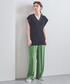 【身長】 164cm 【普段サイズ】 トップス36/ボトムス34・36/シューズ36h又は37 【サイズ感】 トップス:一枚で着用しやすいゆとりのあるサイズ感 ボトムス:腰回りがタイトですっきりしたシルエット。丈が長めの為ヒールとのバランスが好相性 【素材感・着心地】 トップス:ポリエステルがメインのさらりとした素材感で、肌離れのよさが魅力 ボトムス:しっとりとした上品さを感じるさわり心地 【コーディネイトのポイント】 一着で主役になるデニムパンツをメインにコーディネート。ネイビーのゆったりしたトップスに丈が長めのデニムパンツを合わせているので重い印象にならないようにヒールで足元に抜け感を出しました。