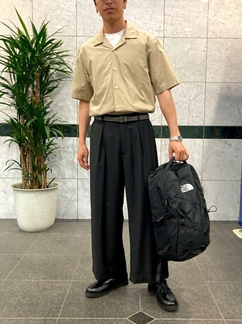 Masao.のスラックス「クラシック ツイード ロング丈ワイドパンツ」を使ったコーディネート
