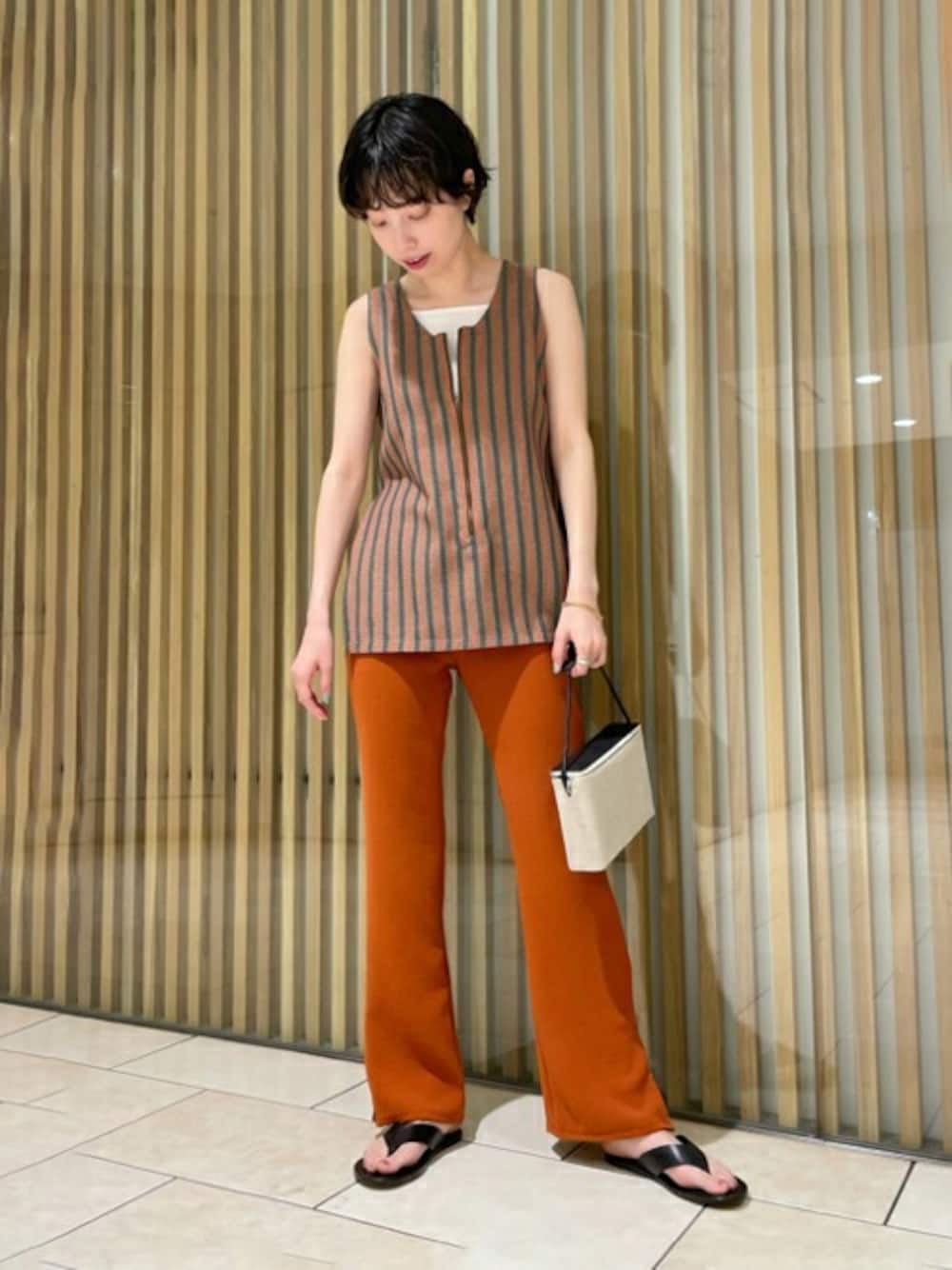 〈Edition〉イージースリットPT 素材感 : 柔らかい素材感で、履き心地が良いです。 サイズ感 : フィット感がありますが、裾に向かってフレアに広がるシルエットで美脚効果があります。