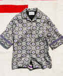 〈TOMORROWLAND 〉コットンジャガードニット ショートスリーブオープンカラーシャツ 素材感:ニット素材ですが、程よくハリがあります。 ダレることなく、シャツのようにシルエットをキープする事ができます。 サイズ感:ややゆったりめ。Sサイズでも着用出来ましたが、あえて1サイズ大きめに着ています。 こういった柄物はサンダルなどで「リゾート」っぽく合わせるのも良いですが、あえてスラックスとスニーカーでストリートっぽくコーディネートしてみました。