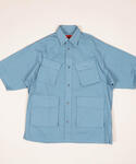 〈BLUE WORK〉ブロークンツイル ファティーグショートスリーブシャツ 素材感:ヘビーユースをして経年変化を楽しみたい素材。しっかりとした厚みがあることで羽織りとして使えることもポイント。 サイズ感:程よいゆるさのあるシルエット。 〈BLUE WORK〉ブロークンツイル ワイドイージーパンツ 素材感: 素材にハリがあるのでシルエットが引き立ちます。 ブルーとホワイトを基調に、ニットティシャツのブラウンで差し色をいれて、フレンチワークを意識したスタイルを組みました。