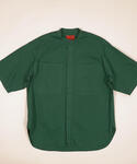 〈BLUE WORK〉ブロークンツイル バンドカラーショートスリーブシャツ 素材感:厚手でしっかりとしたハリのある素材感。 使用していくごとに色味や生地の経年変化を楽しんでいただけると思います。 サイズ感:トレンド感のあるビッグなシルエット ミリタリー+ワークの組み合わせは相性良く、無骨なイメージのアイテムをクリーンなカラーでまとめました。