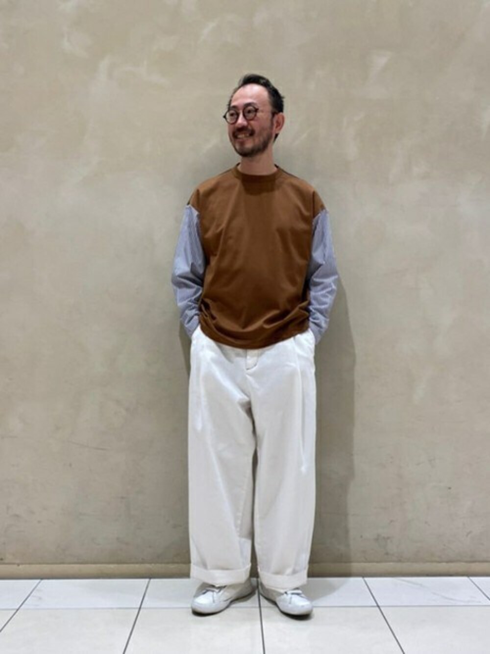 TOMORROWLAND MENSのTシャツ/カットソー「コットン ストライプ シャツコンビデザインプルオーバー」を使ったコーディネート