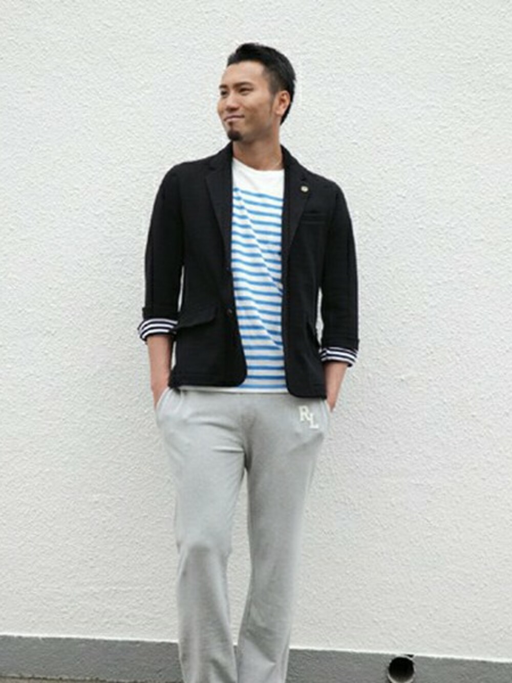 気軽なJKスタイル♪ カットソー素材のJKにシルエットのスッキリしたボトム。 インナーはやはりスプリングスタイルに欠かせない ボーダーマリンTシャツでセット♪