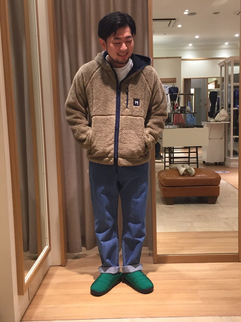 フワッとした質感が特徴のフリースパーカー。 定番のASTLADプリントが目を引きます。 足元にはトレンドのSUBUのウィンターサンダルを。病みつきになる履き心地です。 (height:167cm,size:M)