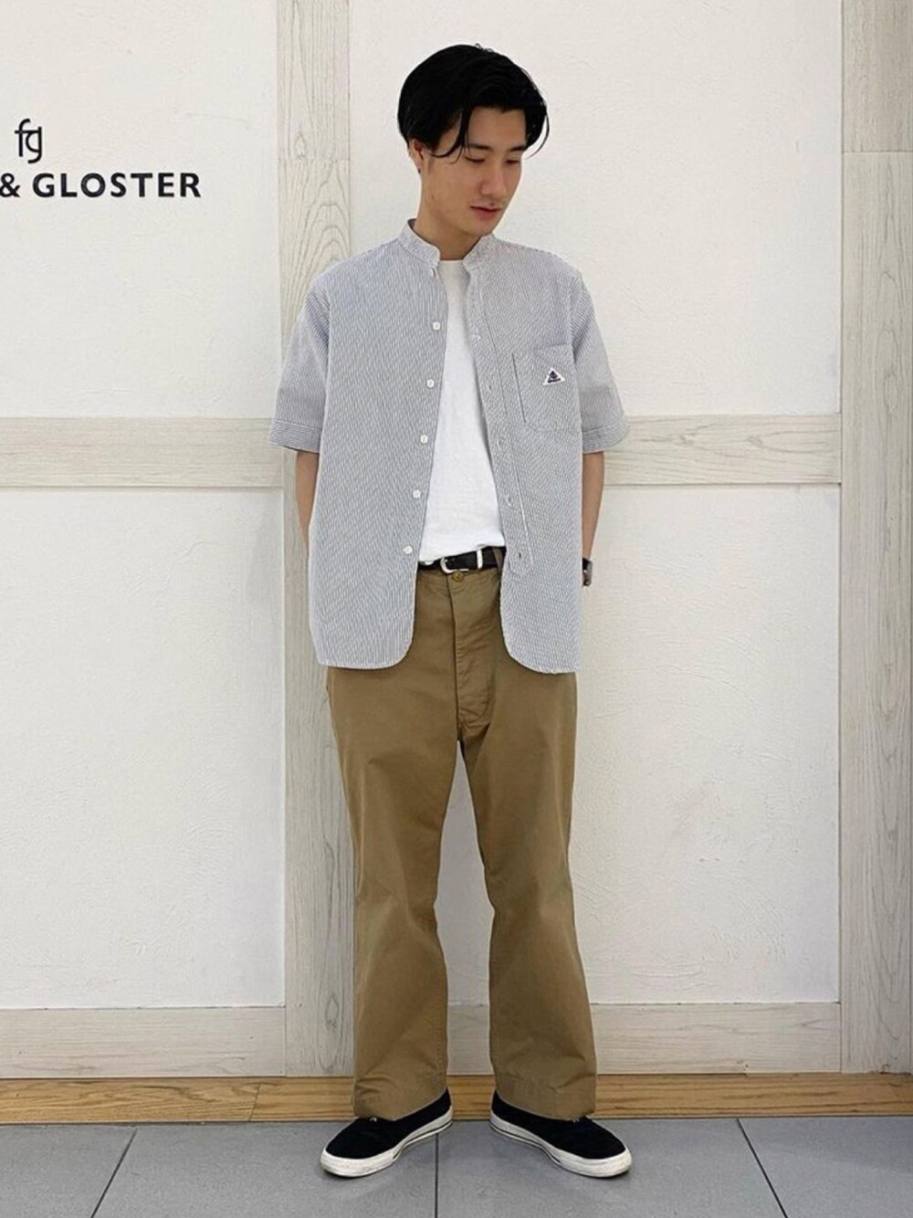 GLOSTER styling(FREDY & GLOSTER EC)のシャツ/ブラウス「【GEVACO/ゲバコ】 バンドカラーシャツ #GV131M01」を使ったコーディネート
