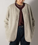 DANTON定番のフリースカーディガンです。 とてもしなやかで軽い生地ながら、暖かい空気を逃さず保温性抜群。 秋口からのアウターとしてはもちろん、薄手で軽量なため、冬場のコートなどのインナーとしても活躍します。 上品なノーカラーデザインなのでシャツをインナーに着用したレイヤードコーディネートにもお勧めです。 身長 160cm サイズ 42 web staff