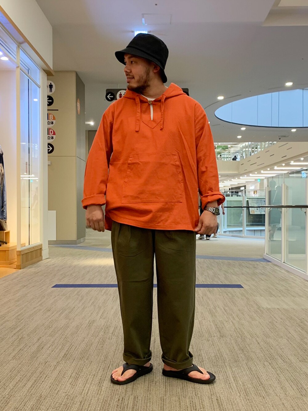 綿麻のざっくり感が魅力的なメキシカンパーカー 小物はブラックで統一しています。 身長 170cm サイズ L ららぽーと立川立飛店staff