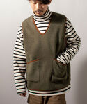 暖かいボアフリースを採用したVネックベストです。 ラウンドした裾やパイピングがデザインポイントになります。 今回はバンドカラーシャツで合わせてみました。ロンTも今の時期なら良いですよね。 もう少し寒くなったらタートルネックもオススメです。 いつものコーデにプラスするだけでぐっと秋冬のムードが高まります。 トートバッグは ペンドルトンとTAIONのコラボアイテム。 女性にもオススメです。 身長 183cm ラゾーナ川崎店staff