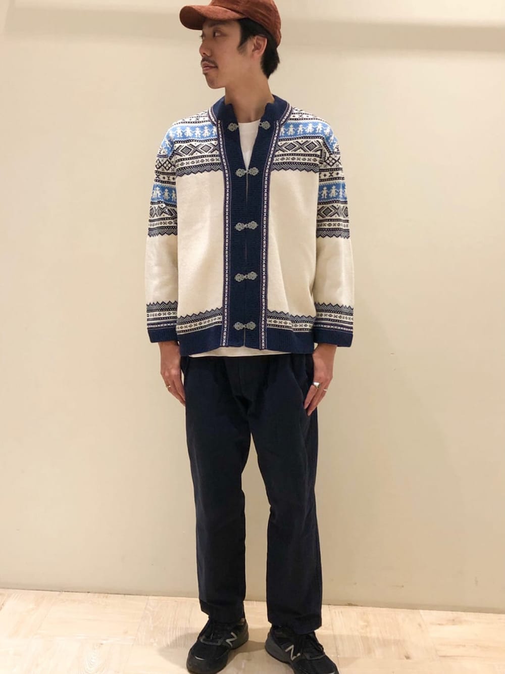 秋冬シーズン、アウター下に着るコーディネートを組んでみました。 ダークトーンのアウターが増える中で、こちらのカーデを羽織るだけで差し色、柄に使えます。 アンティーク風な留め具が印象的なデザインとなっています。 ベーシックなサイズ感なので着回し抜群です。 ワンサイズの為女性のお客様にもオススメです! 身長 183cm ラゾーナ川崎店staff
