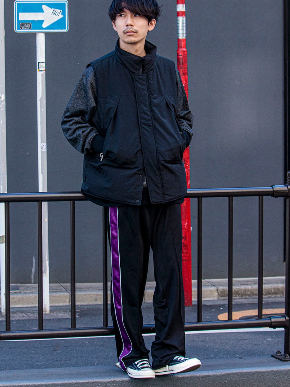 オールブラックにトラックパンツのパープルが差し色◎ 身長 170cm web staff