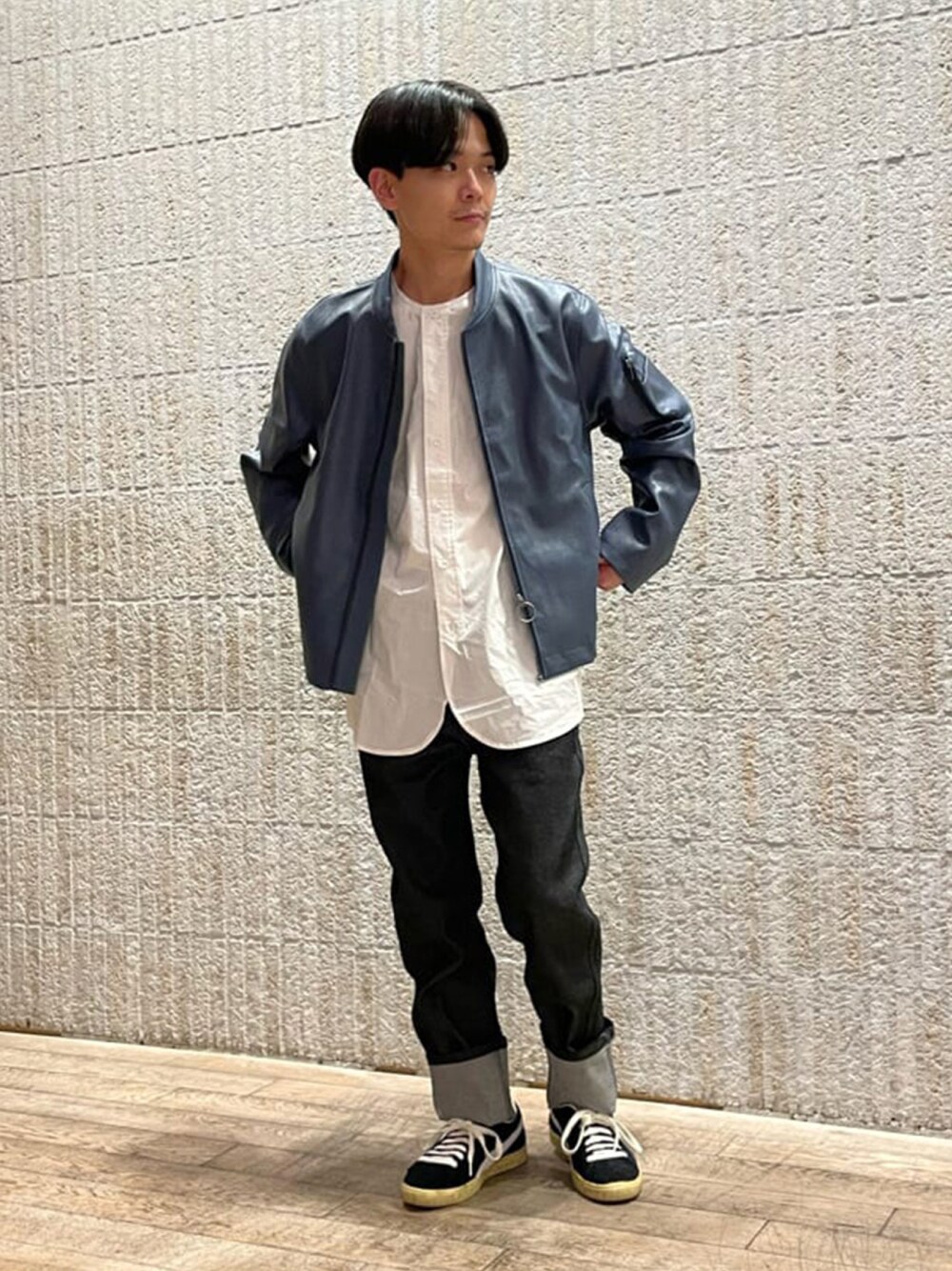カラーが爽やかなフェイクレザーのフライトジャケットを主役にコーディネートしましま。 王道の組み合わせですが、久々の黒デニムが新鮮で個人的に今季オススメです! 身長 170cm 二子玉川店staff