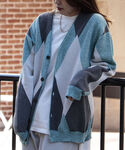 やや大きめのシルエットで柄が特徴的なカーディガン 綺麗めのパンツを合わせることで柄や色物であってもまとまるコーディネート