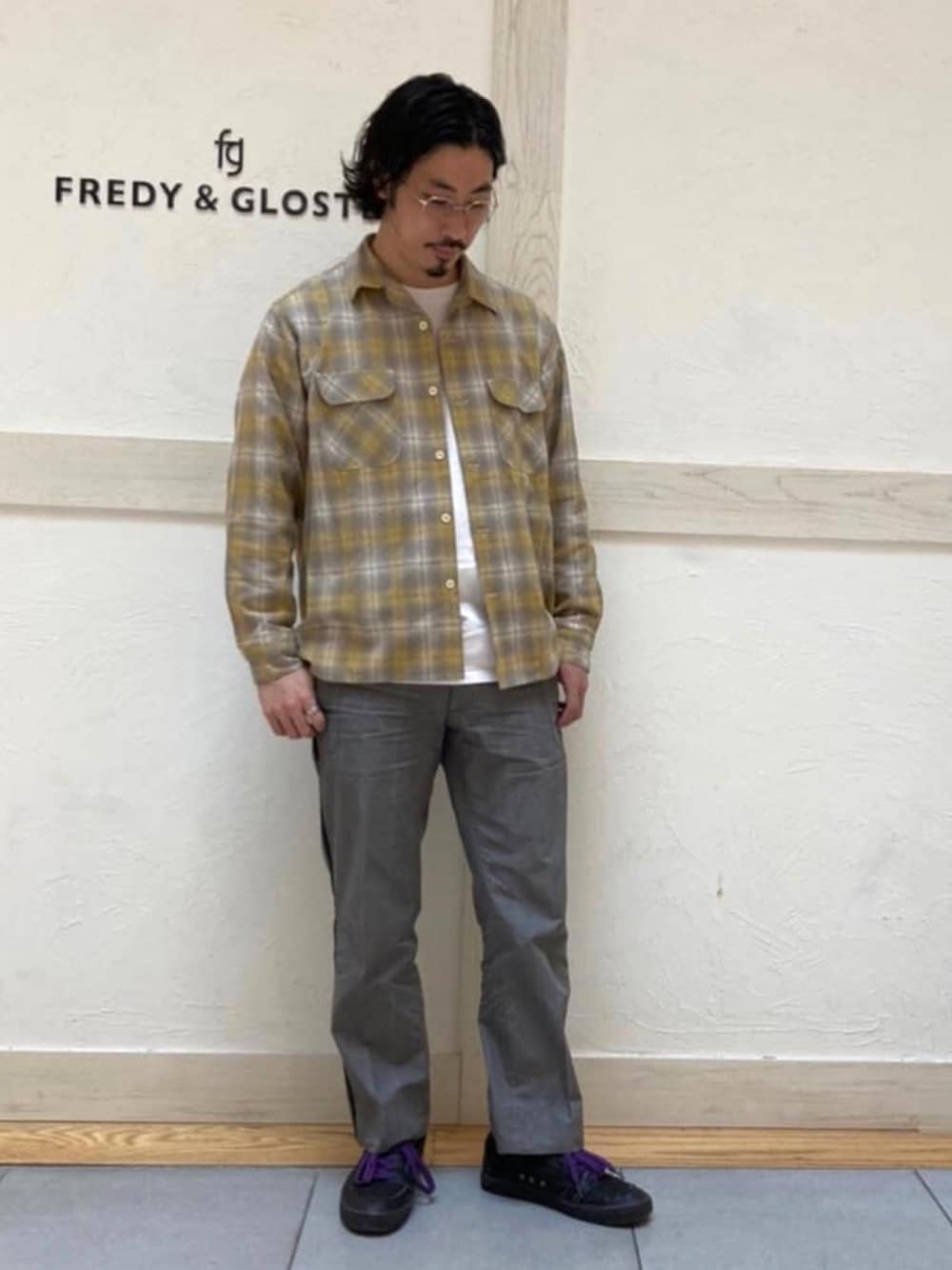 ペンドルトンのチェックシャツ。グレーのパンツと合わせて爽やかに合わせました。 Lサイズ着用ですがそこまで大きくなりすぎずスッキリしたシルエットです。