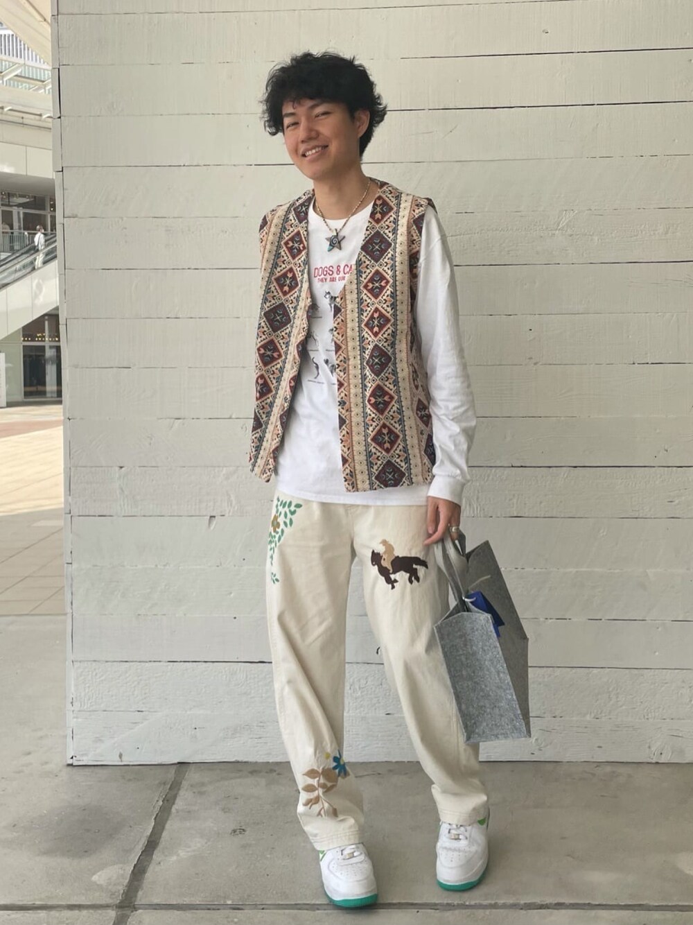 GLOSTER styling(FREDY & GLOSTER EC)のベスト「【GLOSTER/グロスター】ゴブランライク ネイティブ柄ベスト ジオメトリックパターン」を使ったコーディネート