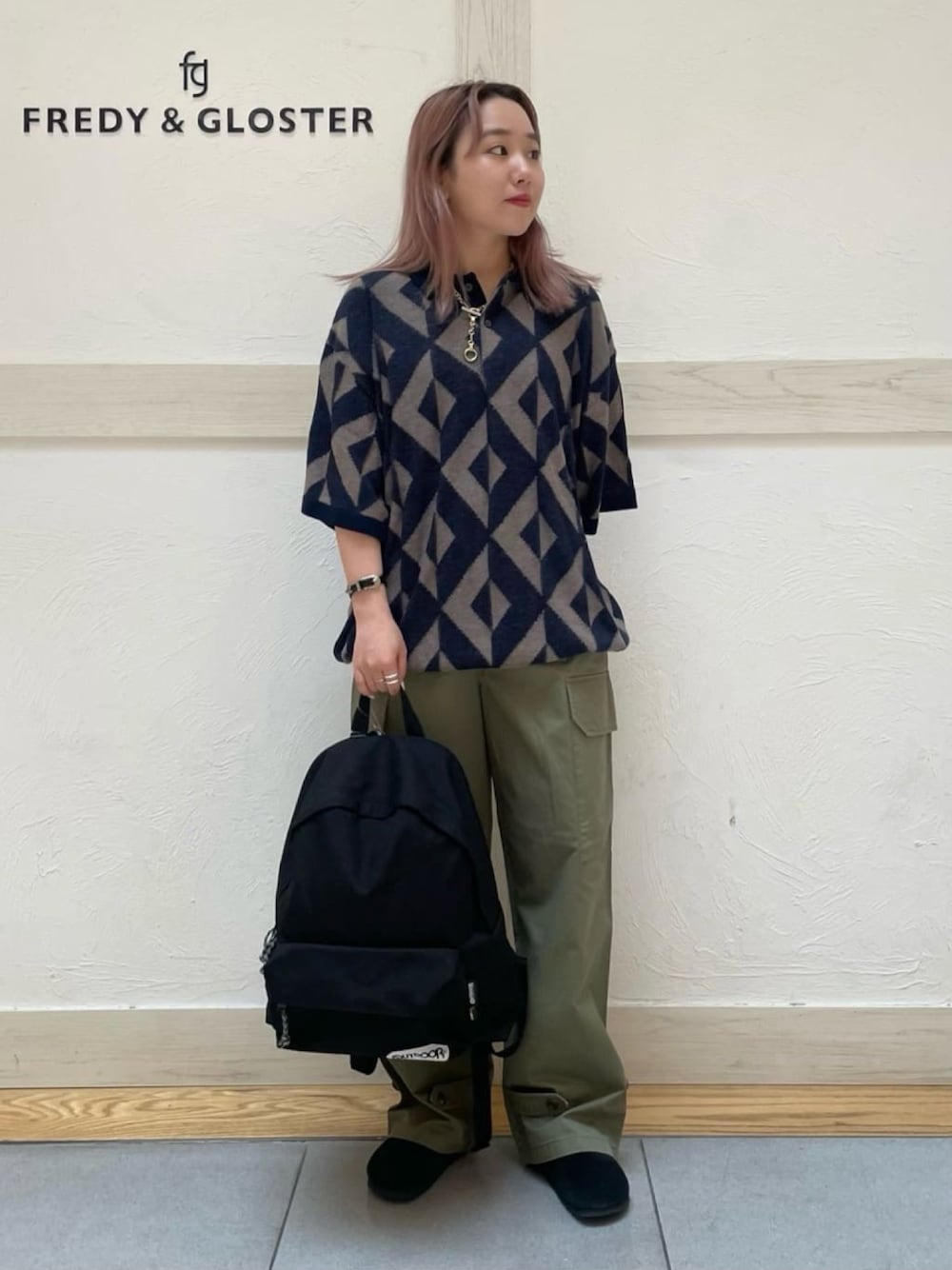 GLOSTER styling(FREDY & GLOSTER EC)のポロシャツ「【GLOSTER/グロスター】ジオメトリック ニットポロシャツ」を使ったコーディネート