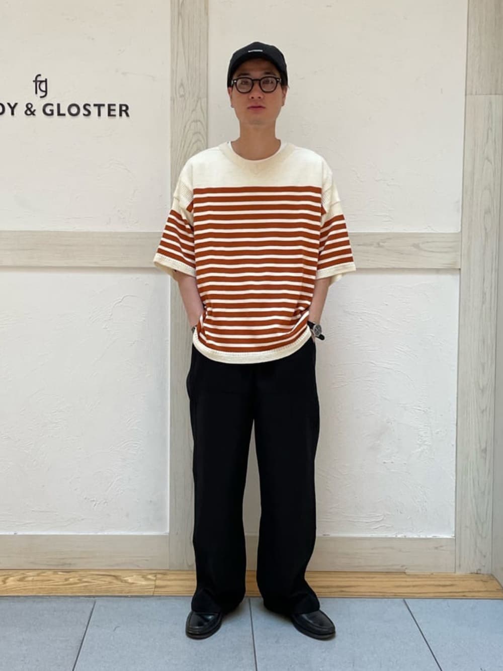 GLOSTER styling(FREDY & GLOSTER EC)のTシャツ/カットソー「【GLOSTER/グロスター】ガンジーニット VネックTシャツ」を使ったコーディネート