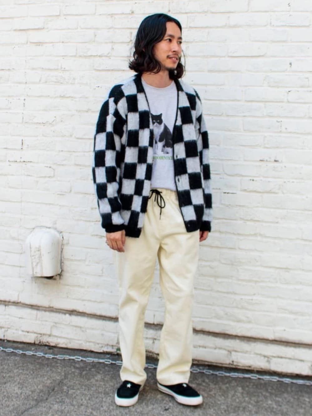 モノトーンでまとめたスタイリング。 イチオシの秋冬先行アイテムを着てみました。 カーディガンからちらっと見つめるネコが可愛い..
