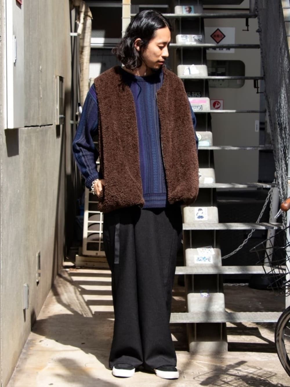 トレンドのボアベストはニットとの組み合わせも◎