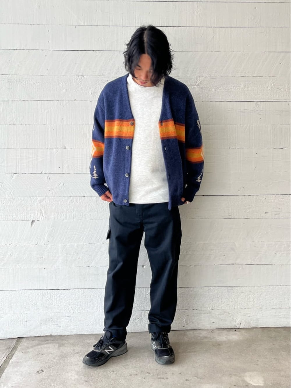 ペンドルトンらしいネイティブ柄が可愛いカーディガンです。 袖にも柄が入っており、中でもネイビーのカーディガンはオレンジのラインも目を惹きます。 比較的大きめのサイズ感の為、厚めのインナーを入れて頂いてもかさばらず着れます。 Instagram @f_hayashi23