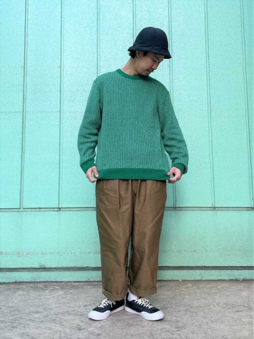 バーズアイ柄の柔らかニット入りました。 パキッとした明るい緑色なのでざっくり着たら雰囲気いいです! インナーとして着ても印象が明るくなるのでいいとこばかりですよ。 是非!!