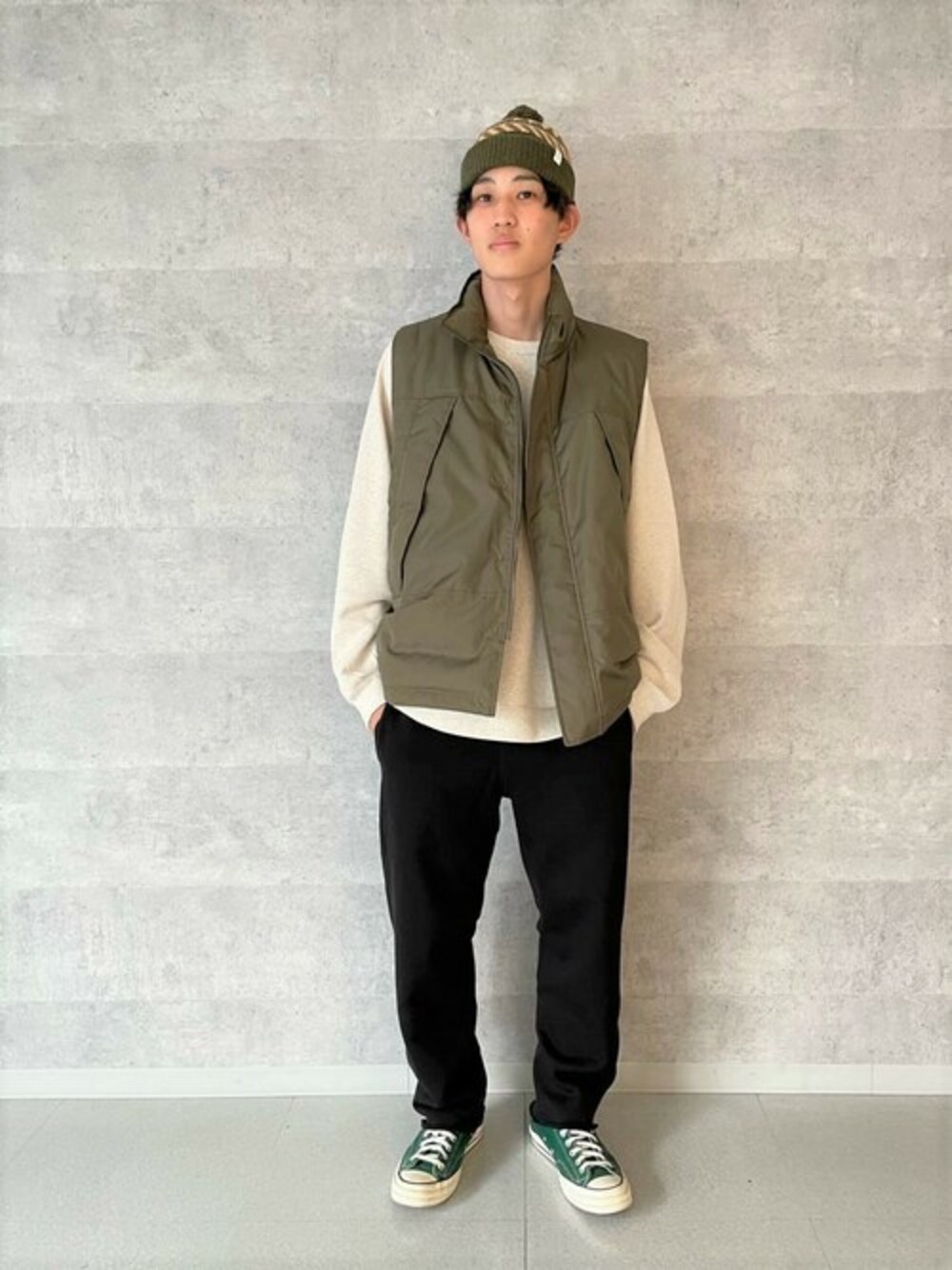 ベストはレイヤリングの都合上、一番上にくる上着のためかなりゆったりとしたサイジングになっていますのでパーカーやシャツなどの上にはもちろん、ジャケットやブルゾンの上に羽織っても動きやすさを妨げません!インナーはPENDLETON パンツは程よくゆったりしたストレートシルエットで、サイドにチロリアンテープを入れることでエスニック調をプラスしながらスタイルが綺麗に見えます!