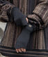 インナーに着ているグリーンのニットが引き立つように、 全身(小物を含め)ブラックで統一し、 派手にならないように大人な落ち着いた雰囲気に