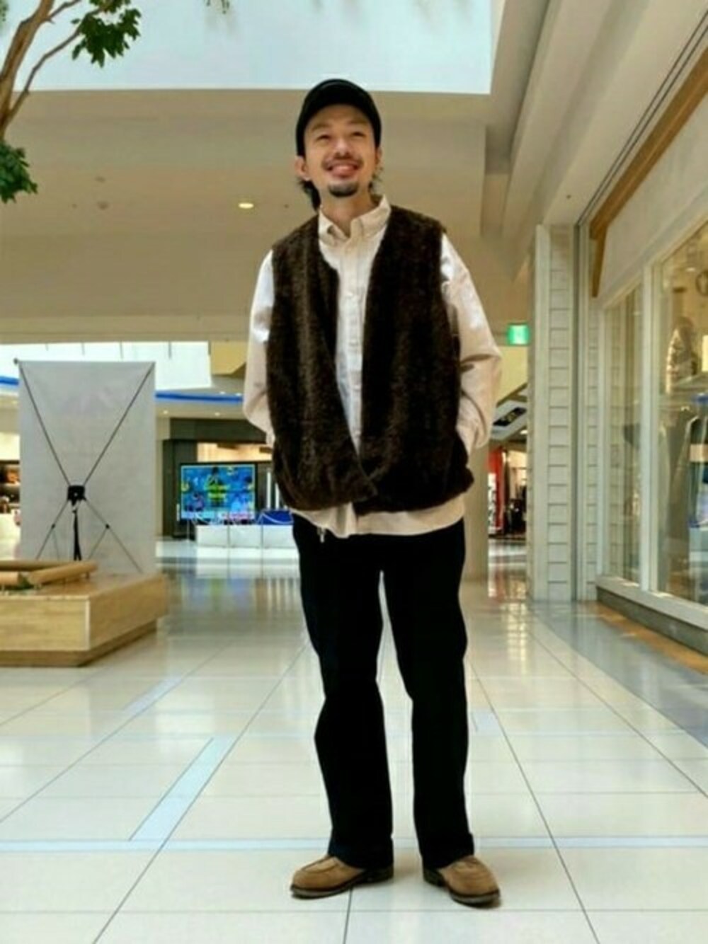 ハンチングに ボアのベストで 簡単マタギstyle シャツとかをインナーに使って中和してください。