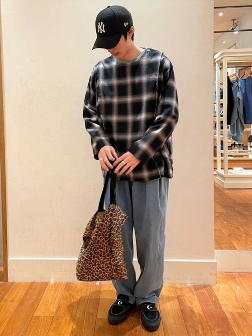 GLOSTER styling(FREDY & GLOSTER EC)のシャツ/ブラウス「【GLOSTER/グロスター】オンブレチェック プルオーバーシャツ カットオフ USED加工」を使ったコーディネート