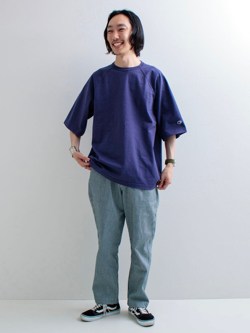 須山(FREDY & GLOSTER EC)のTシャツ/カットソー「【WEB限定】【Champion/チャンピオン】ビッグシルエットラグランハーフスリーブTee」を使ったコーディネート