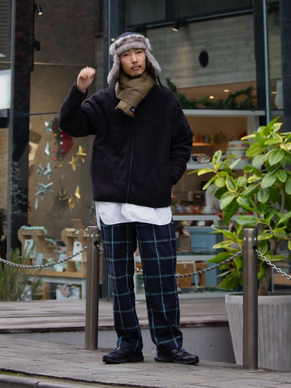身長:177cm 普段サイズ:L フリースとチェックパンツを使った冬コーデ。 冬小物は取り入れるだけで季節感がぐっと出せるのでオススメ◎ Instagram @suya_829
