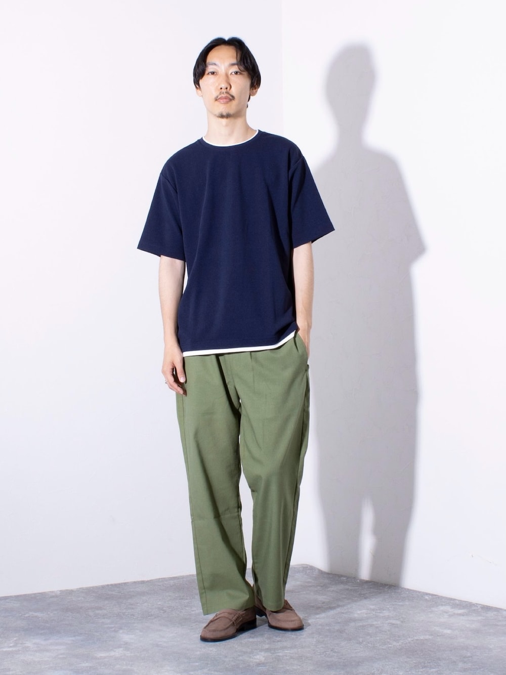 須山(FREDY & GLOSTER EC)のTシャツ/カットソー「【GLOSTER/グロスター】ふくれ フェイクレイヤード クルーネック 半袖 Tシャツ」を使ったコーディネート
