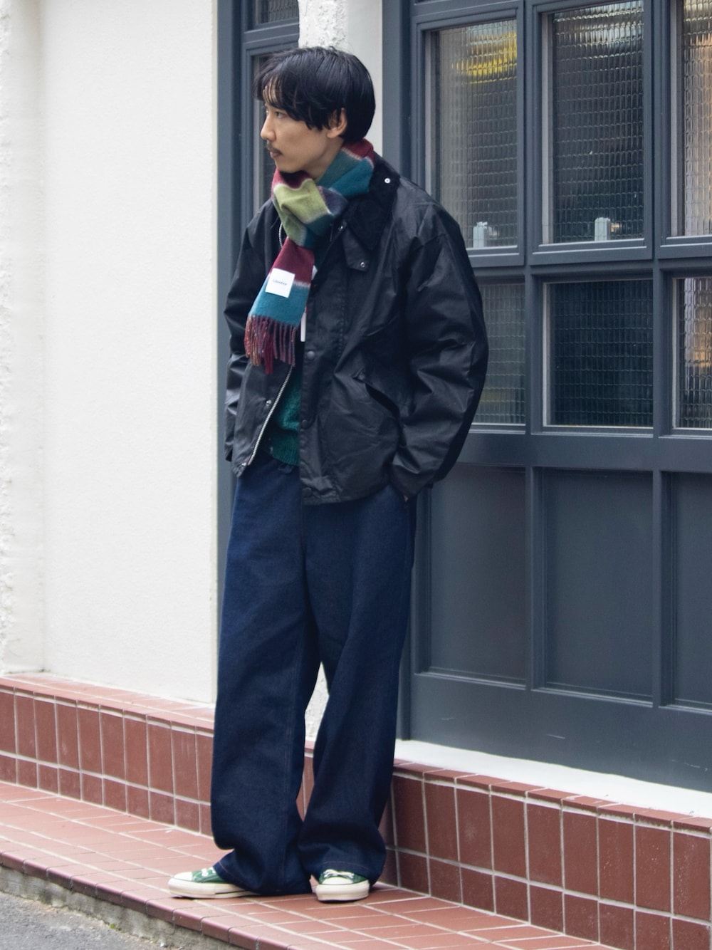 身長:177cm 普段サイズ:L バブアーの人気モデル「トランスポート」を使ったコーディネート。 オイルドコーティングが重厚感を醸し出します。 カシミヤ混のマフラーもお気に入り。