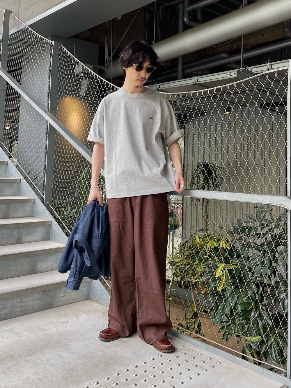 身長:177cm 普段サイズ:L イチオシのTシャツを使った夏コーデ。 大人ぽくローファーで合わせました。 Tシャツはシリーズ化もしている「BOY」シリーズ。 胸ワンポイントや背中の星刺繍、裏地のグラデーション配色などこだわりポイントがたくさん! しっかりした生地の厚みとややルーズなシルエットなので、インナー使いはもちろん1枚でサマになるアイテムです。 サングラスはデンマークのブランド【A.kjaerbede/エキアビド】。 現在ラゾーナ川崎店、ららぽーと鴨居店、モザイクモール港北店、天王寺MIO店にてモアバリエーションポップアップ開催中! ゴールデンウィークのお出かけのお供にぜひおすすめです。 Instagram @suya_829