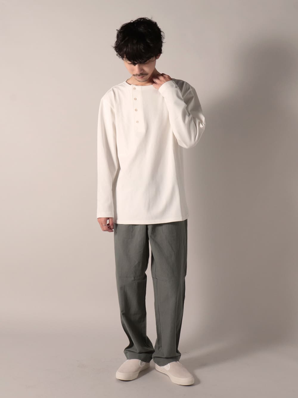 katsuのTシャツ/カットソー「【GLOSTER/グロスター】変形ヘンリーネック ロングスリーブTシャツ」を使ったコーディネート