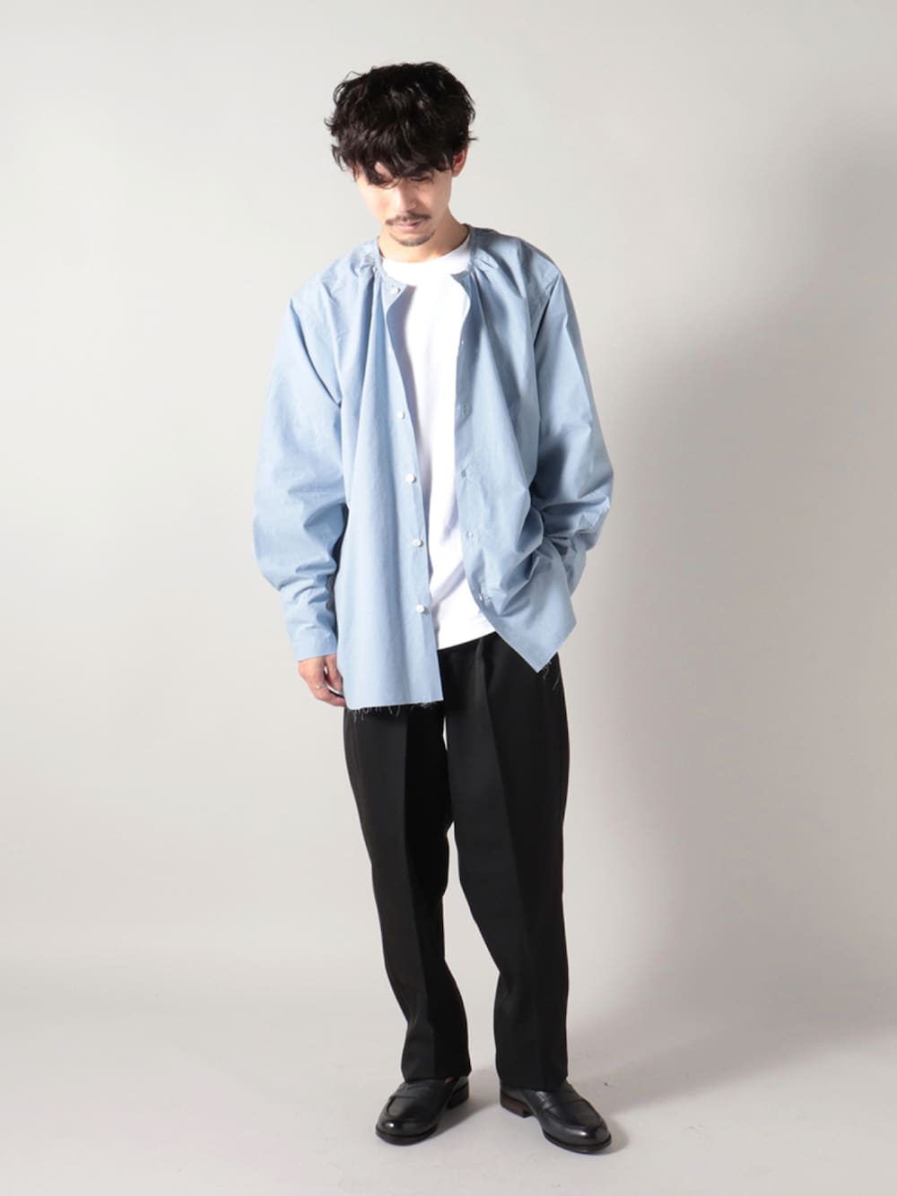 身幅を大きくとり襟元にはギャザーを施したボックスシルエットのノーカラースモックシャツ。 裾はカットオフの仕様にすることで切り口がフリンジ状になり、クラシックさと洗練された雰囲気を生かしながらもラフな感覚を楽しむことができます。 ご覧いただきありがとうございます! ぜひいいねとお気に入りお願い致します! ☟Instagram☟フォローお願いします。 @____katsu._