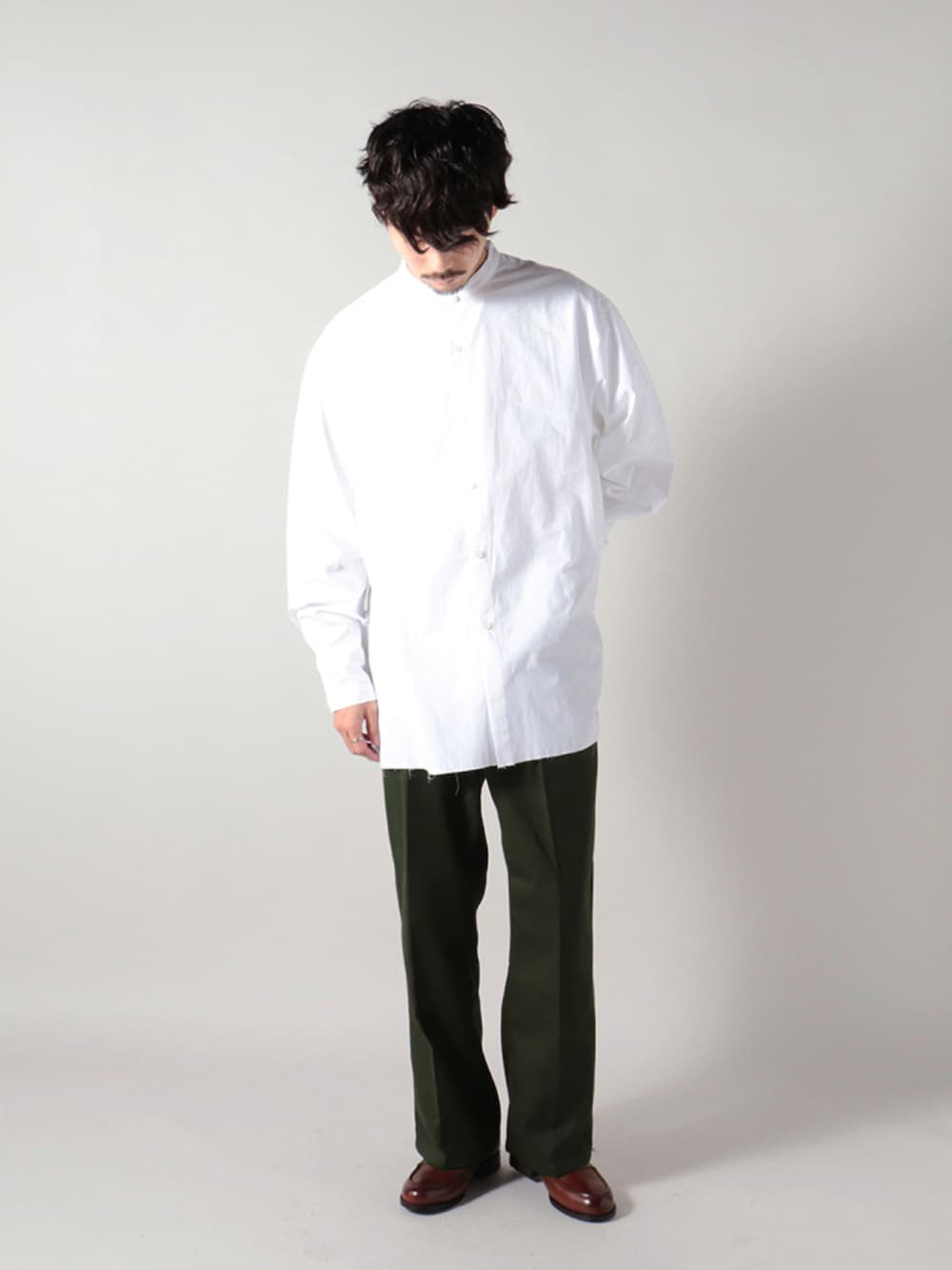 katsuのシャツ/ブラウス「【GLOSTER/グロスター】オーガニックコットン スタンドカラーシャツ」を使ったコーディネート