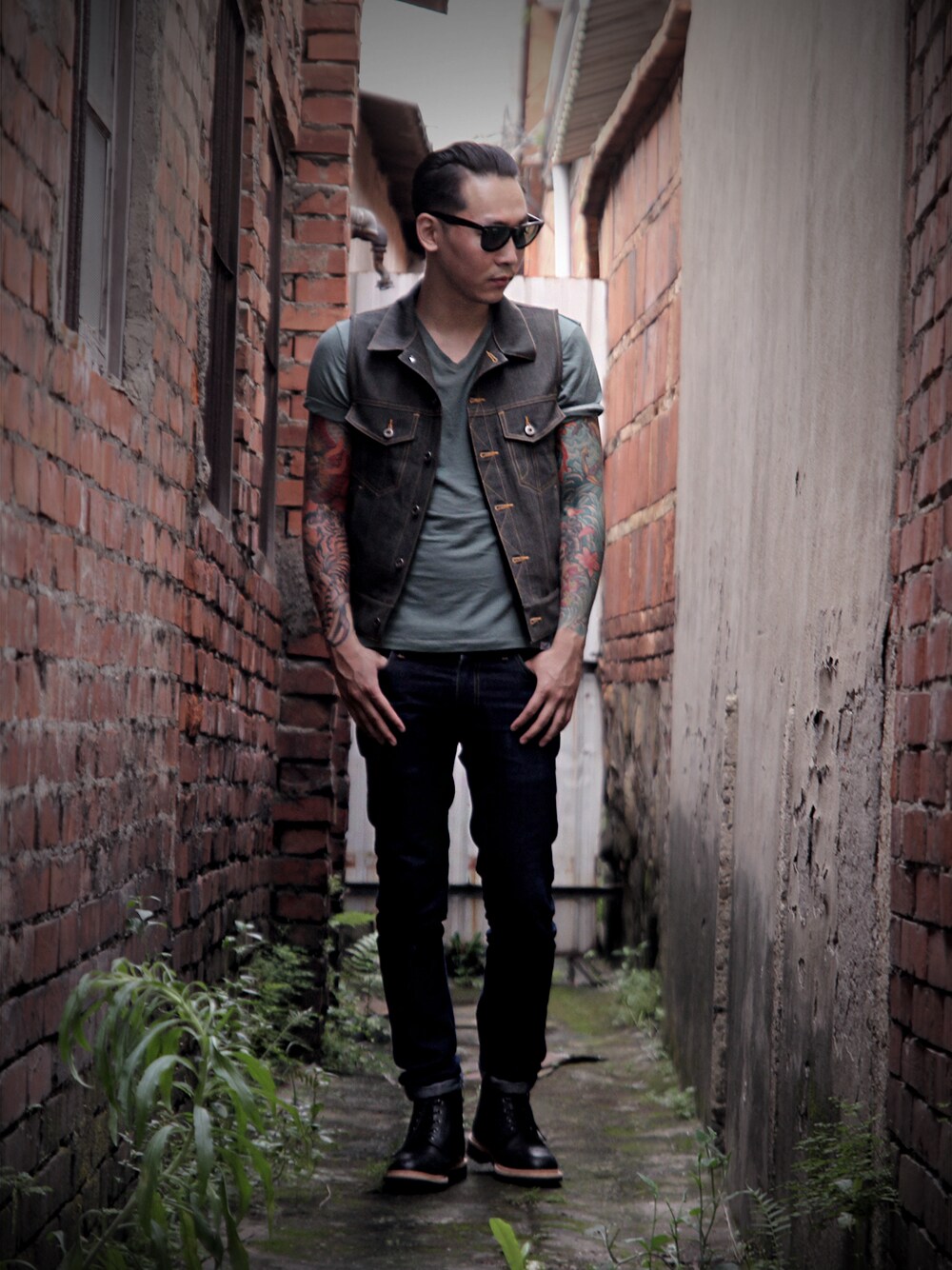 丹寧系列單品的季節又來了 令人興奮的養色風氣正在進行 經過水洗與洗舊處理 讓強硬的原色色彩較為不明顯 搭配略微舊化感的湖水綠短T 更是非常有味道 鏽黃色淺藍讓整體散發出非主流的古著感.....