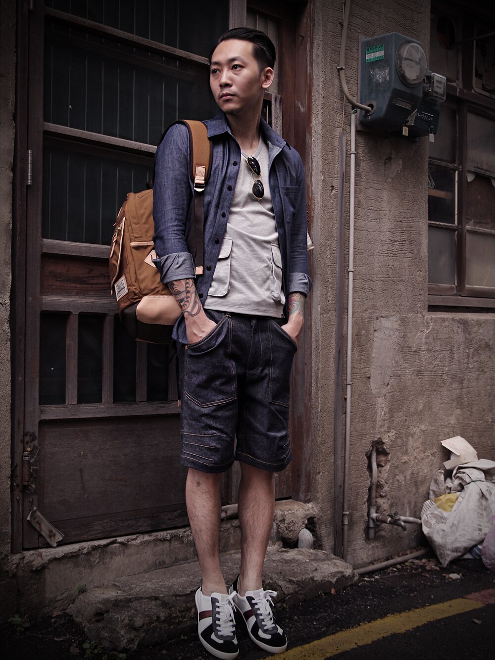 這一身的搭配在於自然的融合丹寧系單品,以美式休閒工作風格為概念。 大受好評的小領襯衫版型選用了超低磅數的丹寧布料呈現, 將斯文的紳士感轉換獨樹一格個性不羈的姿態, 賦予服飾中新奇多變的不同之感。 經過一次輕水洗的原色牛仔布,表布脫漿後的自然色澤耐人尋味, 高彈性的特性保證讓您舒服一夏。