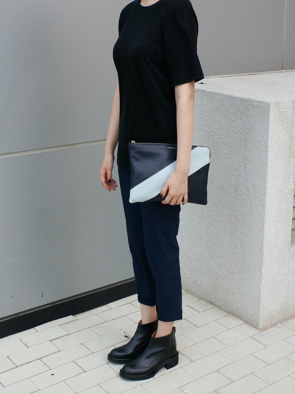 FLATAPARTMENTのクラッチバッグ「NFAC-OB01. navy / sky blue」を使ったコーディネート