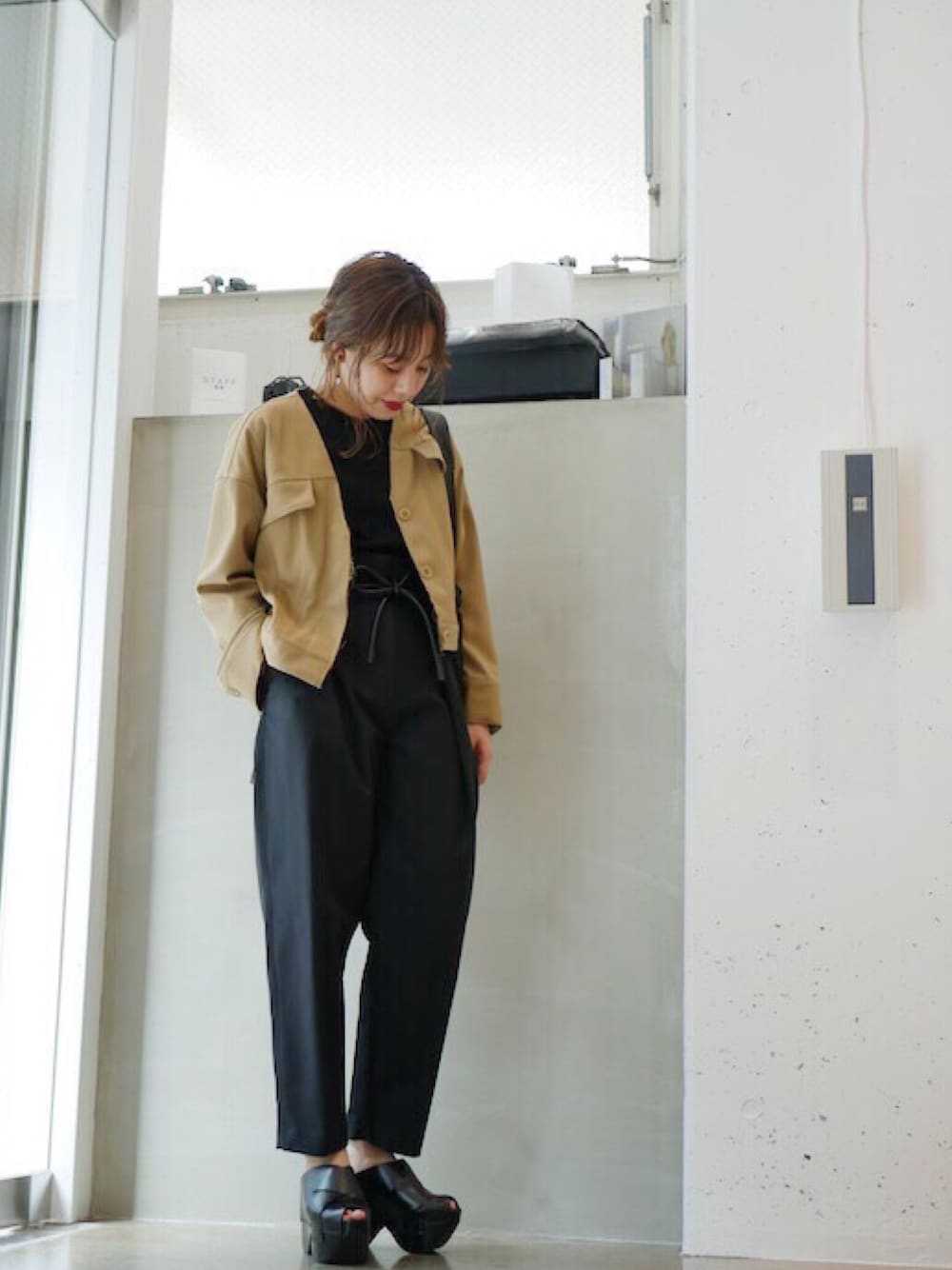 ジャケット/¥42’000− (lot lamb)Size 36 ニット/¥29’000− (MAISON EUREKA)Size F パンツ/¥68’000− (3.1 Phillip Lim)Size 0 サンダル/¥67’000− (Acne Studios) バッグ/¥98’000− (3.1 Phillip Lim) instagram>>>@flont_fukoka