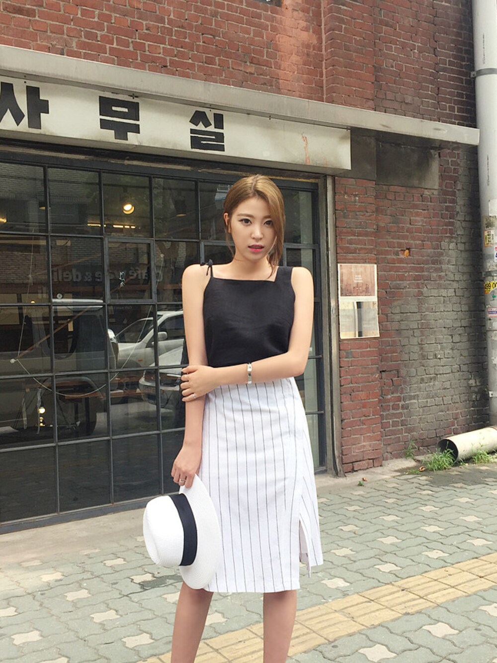FLYMODELのスカート「トライアングル裾カットストライプスカート」を使ったコーディネート