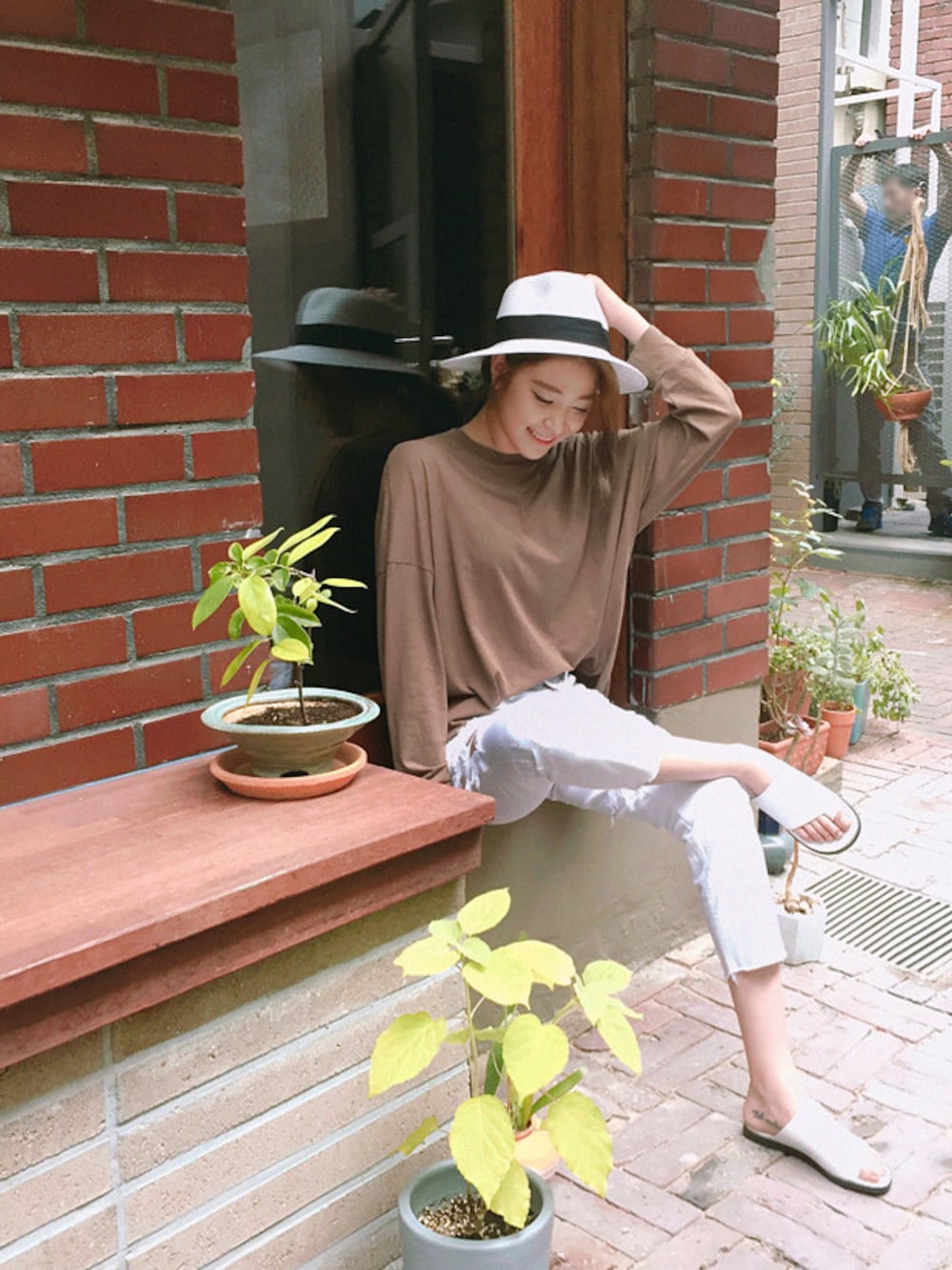 FLYMODELのTシャツ/カットソー「ルーズフィット無地長袖Tシャツ」を使ったコーディネート