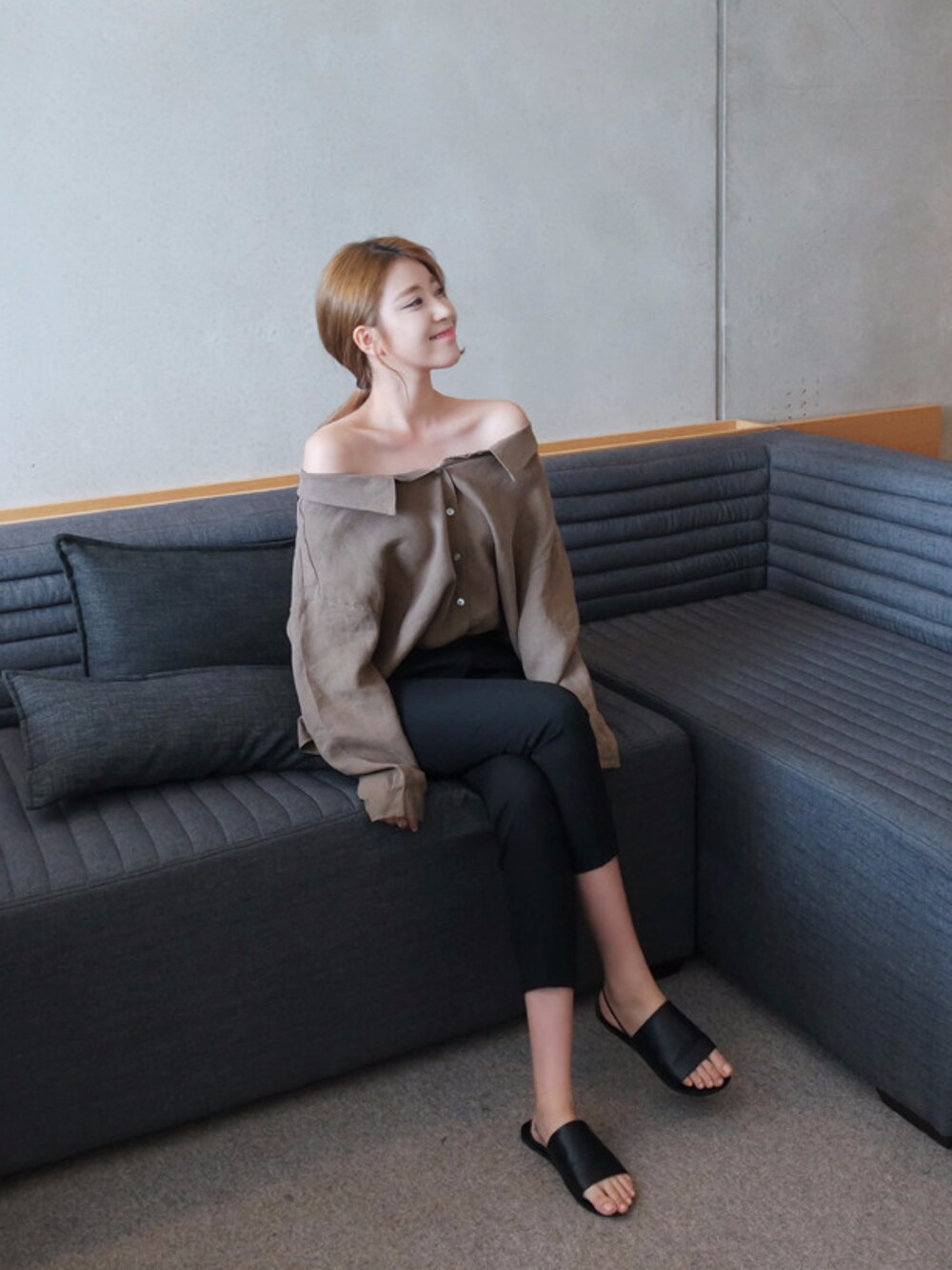 FLYMODELのTシャツ/カットソー「オフショルダーボタンダウンシャツ(P0000QFV)」を使ったコーディネート