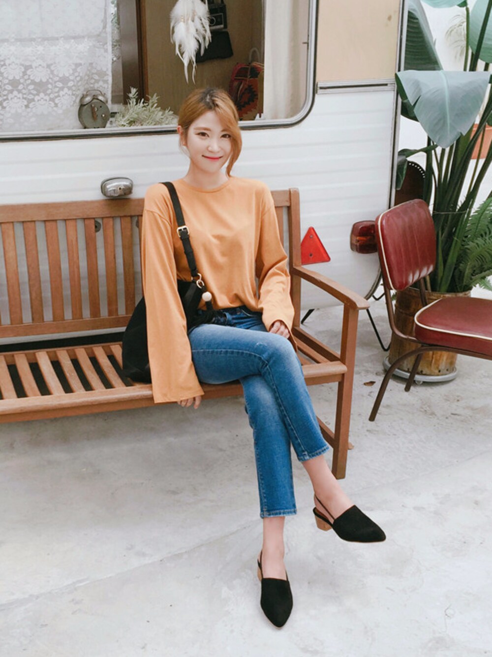 FLYMODELのTシャツ/カットソー「プレーンワイドスリーブ長袖Tシャツ(P0000QHL)」を使ったコーディネート