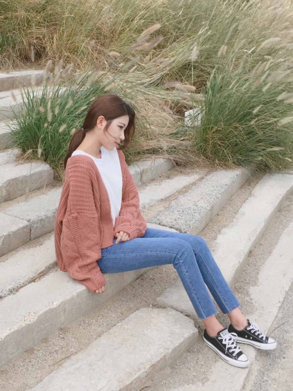 FLYMODELのカーディガン/ボレロ「ケーブル編みオープンカーディガン(P0000QLP)」を使ったコーディネート