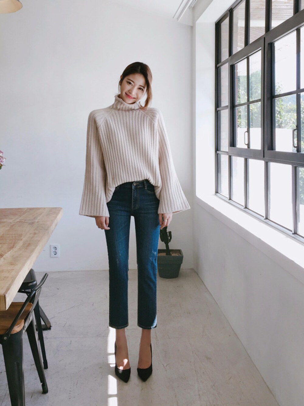FLYMODELのニット/セーター「ラグランワイドスリーブハイネックリブニット(P0000QSC)」を使ったコーディネート